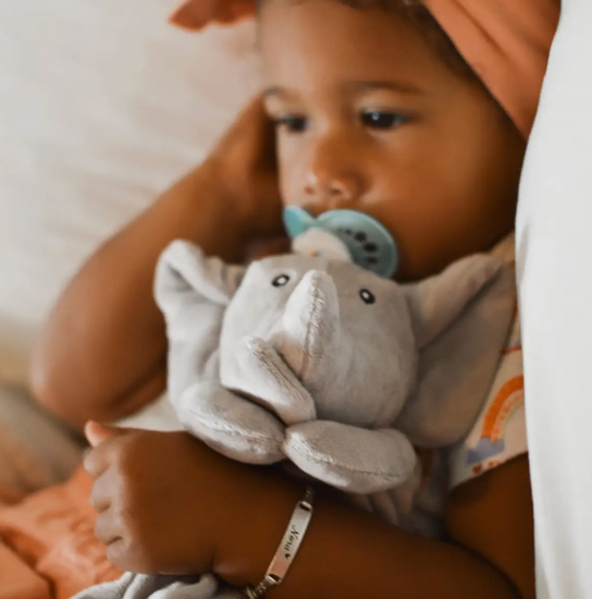 Elephant Lovey Blanket This Elephant lovey blanket is made of a super soft minky fabric and is a great unisex gift for any new baby or toddler. Children use these blankets for comfort and security at naptime, and they are also great to take on outings because of their compact size and the combination of a doll and a blanket together in one. Perfect for a baby shower gift for a new baby, or a birthday gift for a toddler. They're so soft and cuddly! They're so soft! Tell your customers to grab 2, they'll need a backup in case it ever gets lost!! -20"x 20" -made of a super soft minky-like fabric -double thickness, with a satin edging -100% polyester fiberfill in the bunny -crinkle material in the bunny ears -machine washable