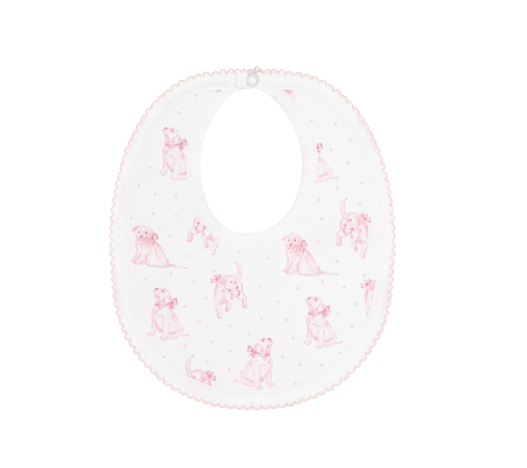 Our Basket Weave Baby Bib is made of 100% peruvian pima cotton. Comes in in three beautiful picot trim colors, Soft Pink, White or soft Blue. It has terry cotton for more absorvency.