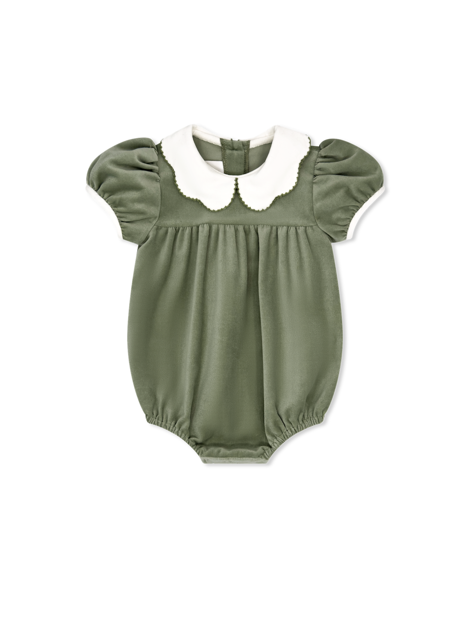 Classic and charming, the Special Moments Bubble is crafted in rich Leyland Green Velvet with a delicate Winter White Velvet scallop collar. This heirloom-inspired bubble is perfect for holiday gatherings, family portraits, or special occasions, combining comfort with timeless elegance.