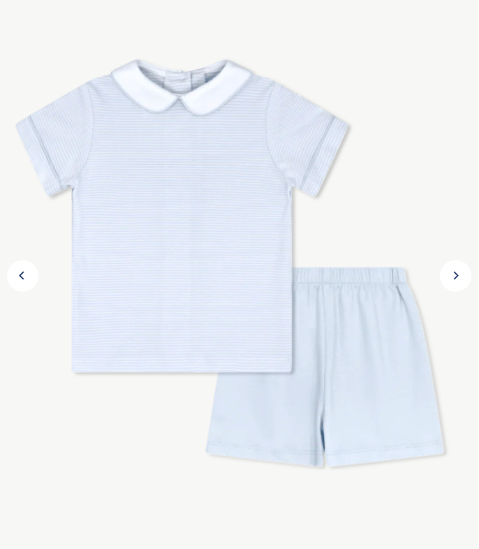 A timeless silhouette with a fresh twist, our Sibley Short Set features a classic top in Louisville Light Blue Ministripe, accented by a crisp white Peter Pan collar for a clean, tailored look. The set is paired with coordinating solid light blue shorts, creating a perfectly polished outfit for any occasion.
