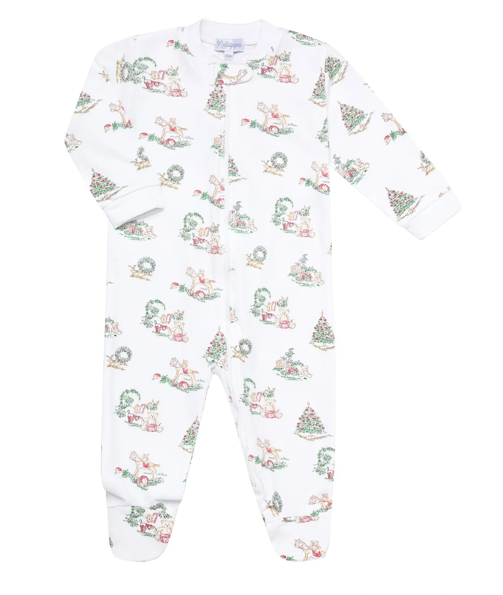This Christmas toile zipper footie is perfect for your little one, with its gentle touch on baby's skin and easy maintenance. Made from 100% Peruvian Pima cotton fiber, it's lightweight and soft, giving your baby a cozy feel. Plus, its festive design in classic seasonal colors adds a cute touch. And with anti-lint and high breathability, this zipper footie is ideal for everyday wear. Need help finding the right size? Check out the size chart below the product images.