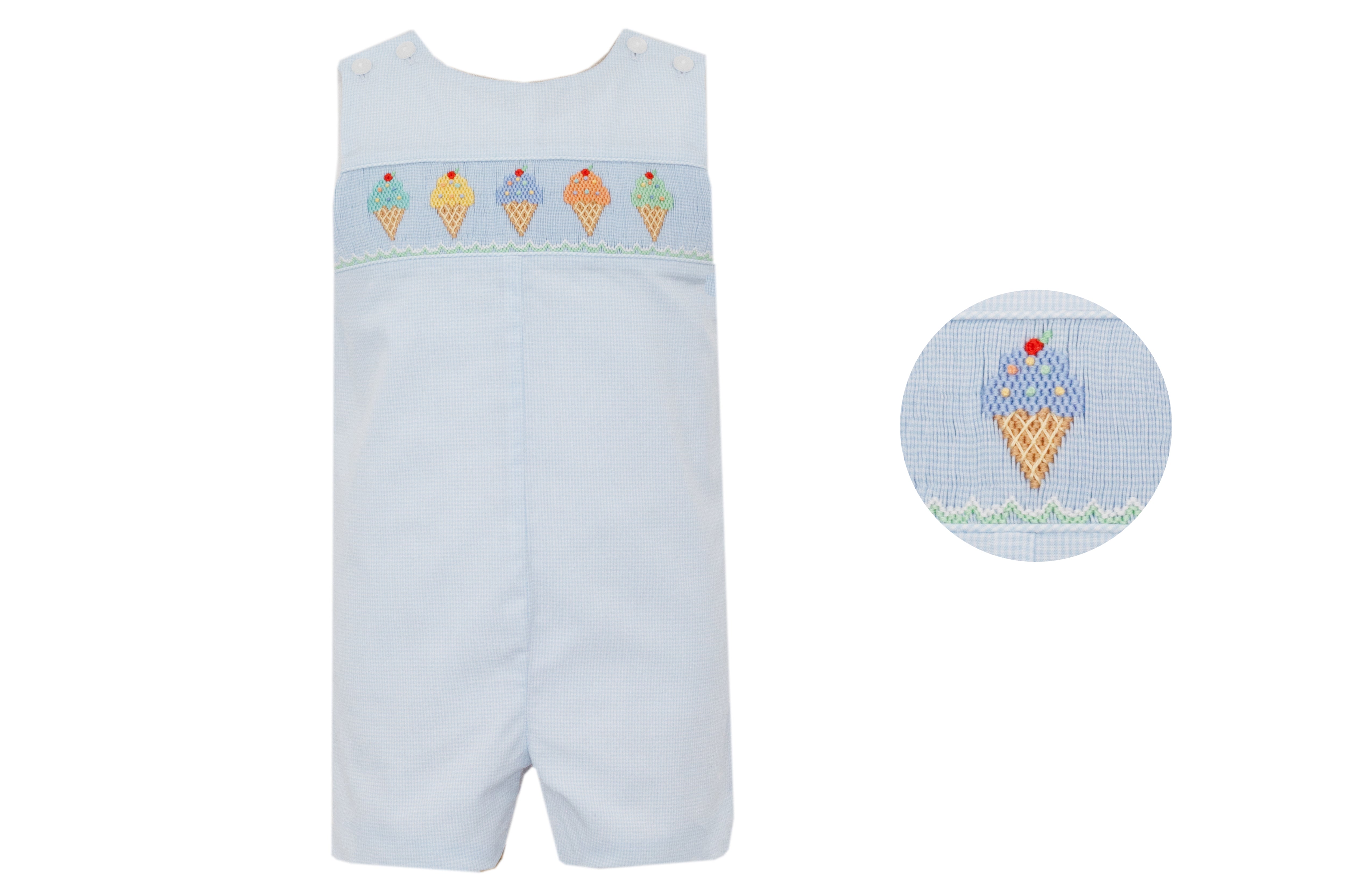 Ice Cream - Light Blue Microcheck Jon Jon - 6M is backordered and will ship as soon as it is back in stock.